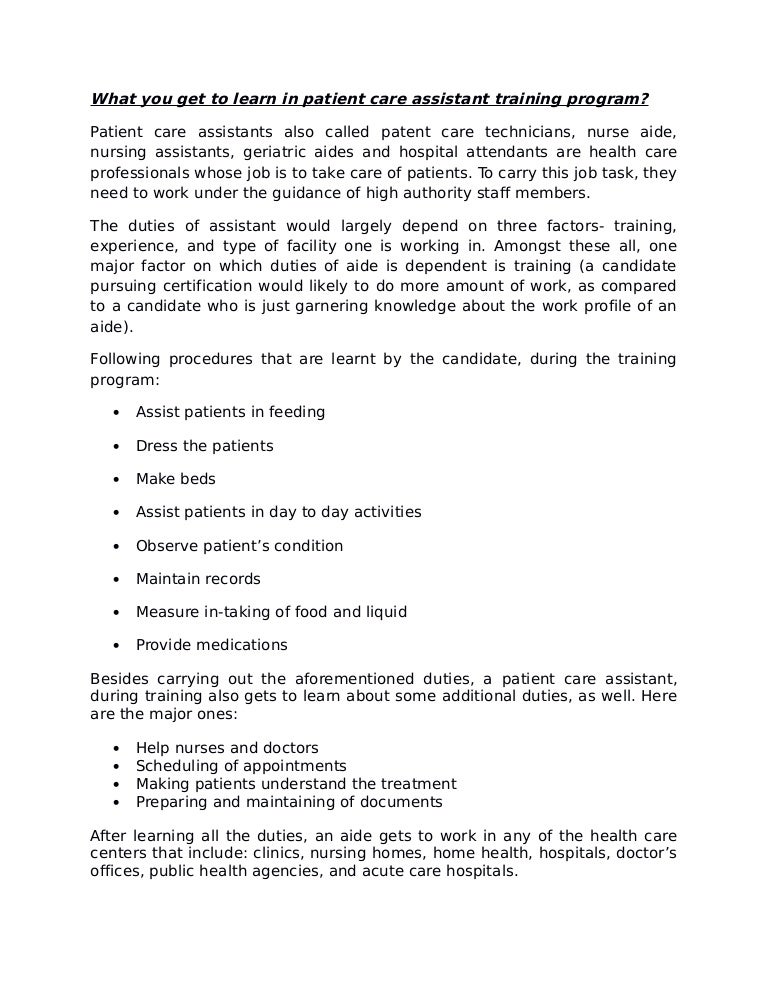 What You Get To Learn In Patient Care Assistant Training Program Pati Agencies For Care Home Jobs Image Source @ www.slideshare.net