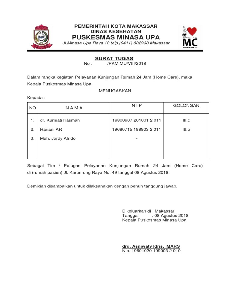 Surat Tugas Home Care Home Care Makassar Gratis Image Source @ id.scribd.com